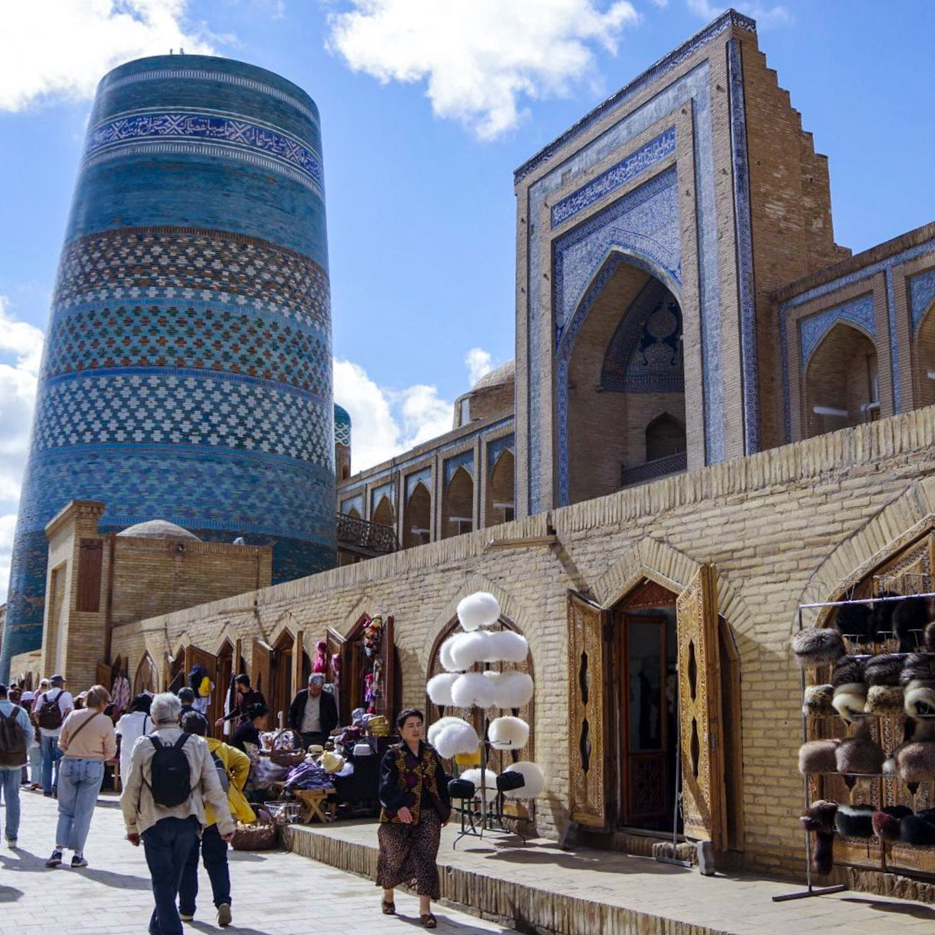 Uzbekistan lies at the heart of the ancient Silk Road. The medieval cities of Khiva, Samarkand and Bukhara are famous for their spellbinding, blue-tiled mosques, madrasas (Islamic colleges), and bustling bazaars. Once a major center of learning, Samarkand still amazes visitors with its architecture and history.